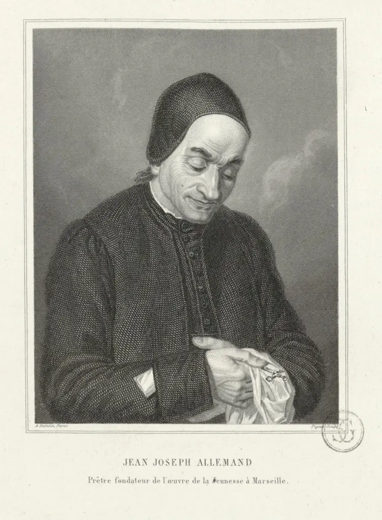 Ordonné prêtre en 1798, l’abbé Allemand entreprend de créer une œuvre d’éducation chrétienne. C’est ainsi que naît, dans le courant du mois de Mai 1799, l’œuvre de la Jeunesse de Marseille: le premier vrai patronage.